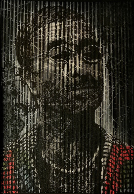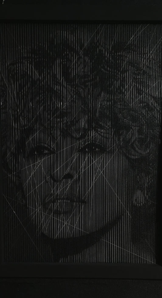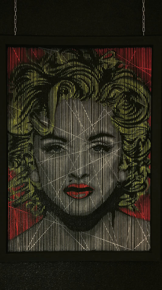 MARRACASH - acrilico fluorescente su fili, 70x90 cm